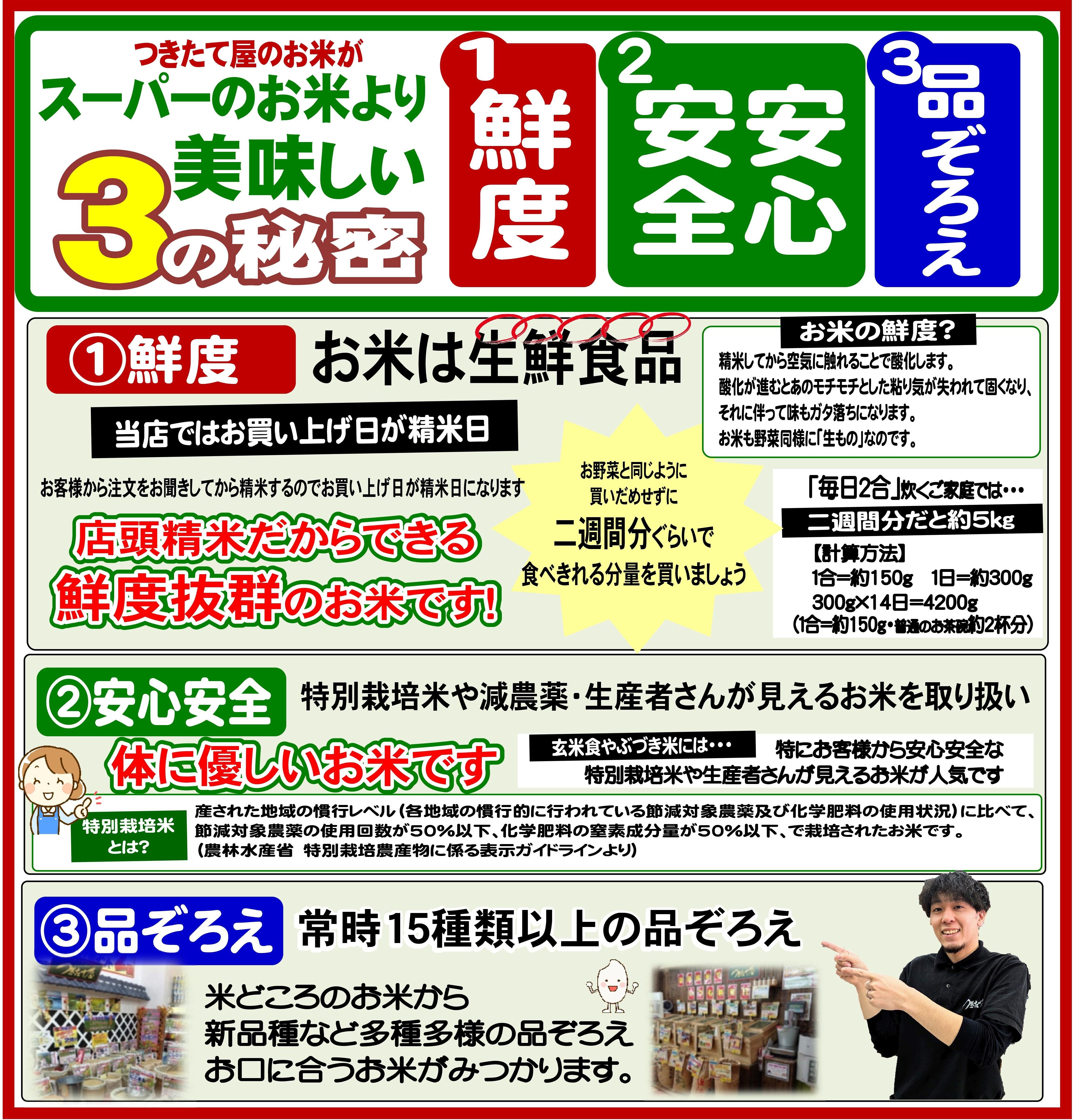 粒がやや大きめのしっかりしていてツヤ、粘り、甘さのバランスが優れているおかずを選ばないお米です。
